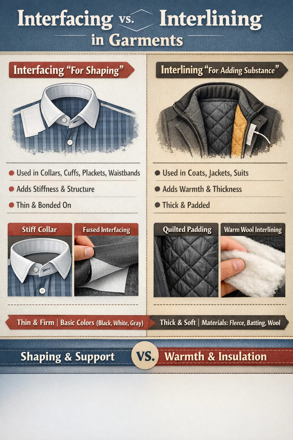 I ndéanamh éadaí agus próiseáil fabraice, idirlinne agus tá comhéadan cosúil leis an "cnámharlach dofheicthe" agus "ciseal inslithe" éadaí. Cé go bhfuil an dá i bhfolach taobh istigh den éadaí, freastalaíonn siad críocha go hiomlán difriúil.