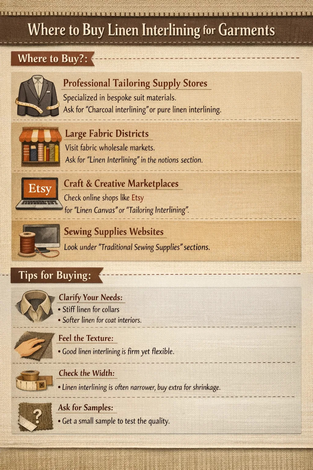 Ar na hardáin seo, speisialtóireacht go leor siopaí neamhspleácha i fabraicí Eorpacha allmhairithe ardchaighdeáin. Is féidir leat cuardach díreach a dhéanamh ar "Canbhás Línéadaigh" nó "In oiriúint Interlining," agus de ghnáth is féidir leat ábhair línéadaigh nádúrtha íon, neamhthuartha a fháil.